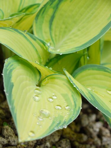 昨夜の悲しみの雨をそっと受け止めてくれているような、芽を出したばかりのギボウシの葉です。
